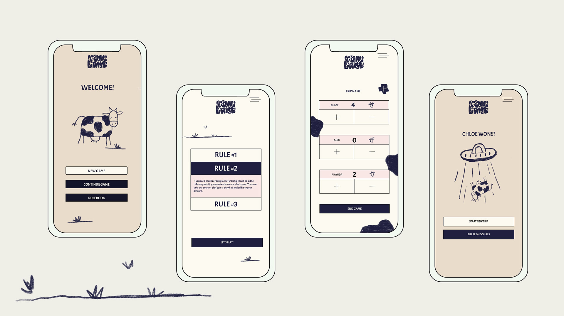 A group of friends are on a road trip. They are excited to spend quality time together but after the excitement dies down and they have finished catching up, they turn the music up and instead of taking a nap or turning to their phones, they decide to play the cow game. There are 3 rules to the game and those are: